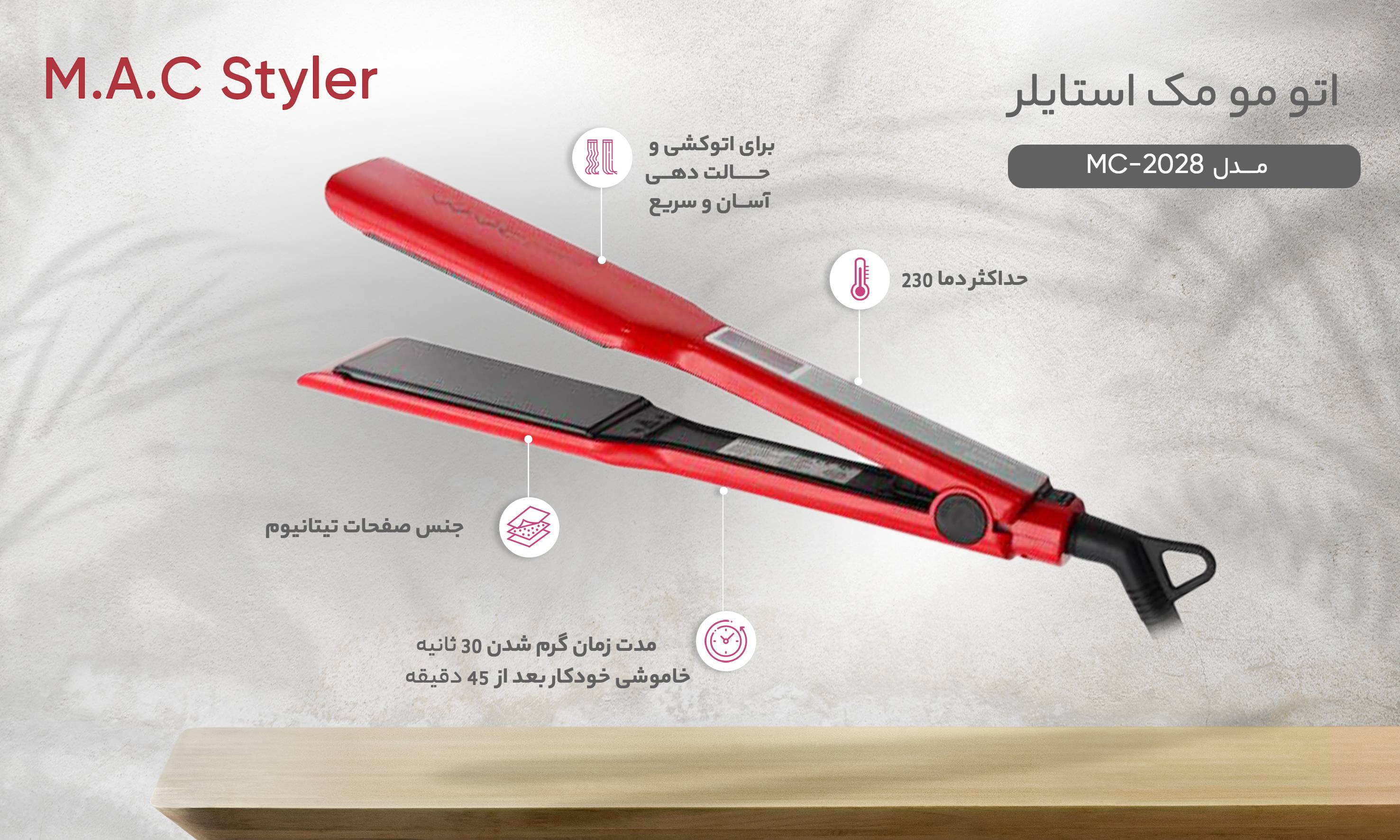ویژگی ها | دارای صفحه لمسی و هوشمند – قفل اتوماتیک صفحه و باز شدن با اشاره انگشت – سیستم گرمایشی بسیار سریع تا ۴۵۰ F – مناسب برای کراتینه و درمان مو – صفحه نسبتاً پهن ۴۵mm با پوشش نانو – دارای قفل دو طرفه – کابل استاندارد با گردش ۳۶۰ – دارای جعبه مخصوص نگهداری با دوام |