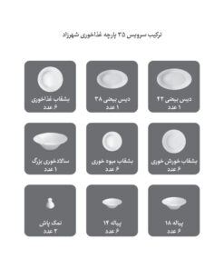 طراحی ظاهری سرویس غذاخوری 35 پارچه چینی زرین ایران طرح سافایر