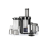 مخلوط کن و آسیاب ناسا الکتریک مدل NS-1966 یکی از مخلوط کنهای حرفهای است که همراه یک آسیاب عرضه میشود. این مخلوط کن دو کاره بوده و علاوه بر مخلوط کردن مواد مختلف، قابلیت آسیاب کردن و خرد کردن را نیز دارد. بدنهای که برای این محصول در نظر گرفته شده از جنس استیل ضد زنگ بوده و در کنار مقاومت بالا، زیبایی خاصی هم به محصول بخشیده است. موتوری که در این مخلوط کن استفاده شده قابلیت محافظت در برابر گرما و دمای بیش از حد را دارد، این ویژگی باعث شده تا در صورت وارد آمدن گرمای زیاد به موتور، آسیبی به مخلوط کن وارد نشود. بنابراین پر بی راه نیست که به این محصول لقب بهترین مخلوط کن را نسبت داد. پارچ مخلوط کن از جنس شیشه است و ظرفیت آن 1.5 لیتر میباشد، مشخص است که چنین مخلوط کنی نیاز گروه و جمعهای متوسط را به راحتی مرتفع میسازد و برای مصارف خانگی میزان مطلوبی است. تیغهی این مخلوط کن 4 پره است، که کار مخلوط کردن را سریعتر انجام میدهد و کیفیت بهتری به مخلوط میبخشد. جنس تیغهها هم از استیل ضد زنگ بوده، که ماندگاری و استحکام محصول را افزایش میدهند. مخلوط کن و آسیاب NS-1966 دارای 2 تنظیم سرعت بوده و عملکرد پالس هم دارد، بسته به نیاز و میزان سختی مواد میتوان سرعت مناسب را انتخاب کرد. مشخصات ظاهری مخلوط کن NS-1966 مخلوط کن NS-1966 ناسا الکتریک مخلوط کنی دو کاره است و با یک عدد آسیاب عرضه میشود. بدنه یا همان پایهی اصلی دستگاه از استیل ضد زنگ ساخته شده و از کیفیت مطلوبی برخوردار است. بدنهی استیل این مخلوط کن در برابر خط و خراش برداشتن مقاومت زیادی دارد و استحکام و ماندگاری دستگاه را افزایش داده است. از ویژگیهای ظاهری این مخلوط کن تنها میتوان به دکمهی انتخابگر چرخان اشاره کرد، که برای تنظیم نمودن سرعت و اعمال عمکلرد پالس به کار میرود. مخلوط کن و آسیاب ناسا الکتریک NS-1966 دارای چراغ نشانگر LED است و زمانی که مخلوط کن روشن باشد، اطراف این پیچ ولومی با نور آبی رنگ LED روشن میشود و جلوهی خاصی به محصول میبخشد.