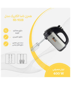 یکی از دستگاههای لازم برای یک آشپزخانه حرفهای همزن برقی است. همزن ناسا الکتریک مدل NS-932B مناسب برای مخلوط کردن و تهیه خمیر بوده و برای تهیه انواع کیک و پیراشکی مناسب است. از ویژگیهای مهم آن میتوان به حداکثر توان 400 واتی و بدنه پلاستیکی از جنس ABS با روکش کروم اشاره کرد. این محصول به همراه دو سری میله از جنس فلز با روکش کروم عرضه شده، که یکی با داشتن 4 پره، مناسب برای هم زدن و مخلوط کردن بوده و دیگری مناسب برای ورز دادن و شکل دادن خمیر است. به جهت دسترسی آسان کاربران، تمامی کلیدهای مورد استفاده در قسمت دسته این همزن قرار گرفته؛ این دکمهها شامل: توربو، eject، انتخاب و تنظیم سرعت است. ویژگی متمایز کننده این همزن با سایر دستگاههای همرده خود، داشتن سیستم خاموشی خودکار است، این سیستم در زمانی که به صورت مداوم از همزن استفاده شود، عمل کرده و با خاموش کردن دستگاه، مانع از آسیب رسیدن به آن میشود. همزن ناسا الکتریک مدل NS-932B، یک دستگاه کاربردی برای یک آشپزخانه حرفهای است.