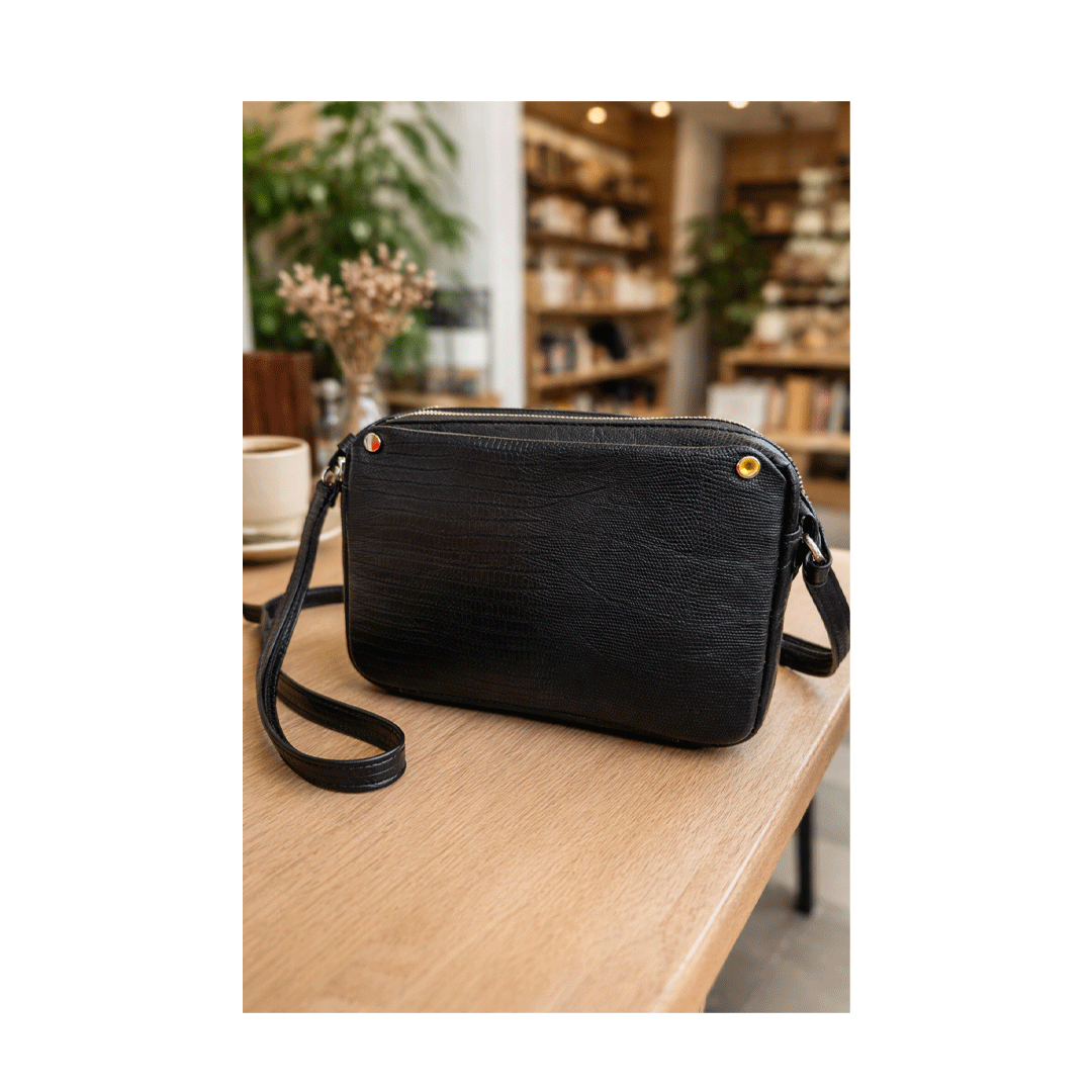 کیف دوشی زنانه چرم طرح کراکدیل – رنگ مشکی