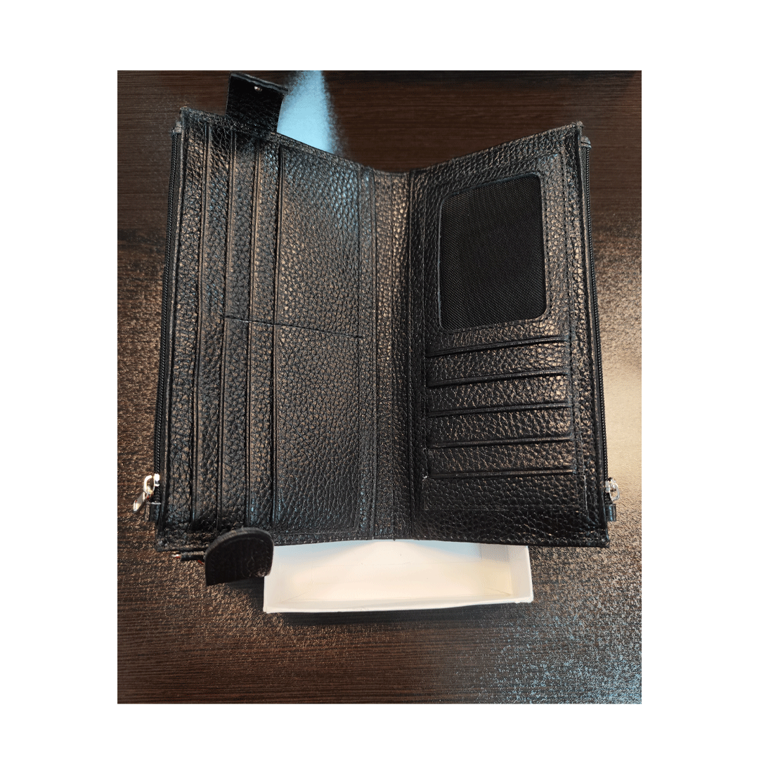 این کیف دارای جای کارتهای متعدد، محفظه مخصوص اسکناس و بخش جداگانه برای سکه است تا همه وسایل ضروری شما بهصورت منظم در دسترس باشند. اندازه استاندارد آن باعث میشود بهراحتی داخل کیف دستی قرار بگیرد یا حتی بهتنهایی استفاده شود.